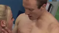 In this highly erotic and steamy office sex scene, the climactic desk encounter begins with a stunning blonde woman walking into her colleagues office, setting the tone for an unforgettable sexual experience.The dude, a handsome man dressed in professional attire, cannot take his eyes off the alluring sight before him, as he imagines a naughty sexual adventure unfolding.As the blonde woman approaches the desk, their eyes lock, and there is an immediate chemistry between the two colleagues.They share a passionate kiss that sends shivers down ones spine.Their lips intertwine hungrily, both of them knowing this encounter could lead to a taboo office romance.Soon enough, they abandon all sense of professionalism as they peel off each others clothes in a frenzy of sexual desire.The dude is left with the blonde woman, exposing her stunning naked body.Her perky buttocks and buns accentuate her sexiness, while he cannot help but admire her tight pussy and labia, already wet with anticipation for whats to come.As their hands roam freely across one anothers bodies, they engage in mutual fingering, their fingers delving deep into the womans slick cunt, which elicits an aura of kinky excitement and heightened passion.The dude can hardly contain his horniness, as the blonde woman teasingly licks and kisses his hard dick, sending it throbbing with a desire for action.As the climactic desk encounter intensifies, the blonde woman takes matters into her own hands, riding him in a cowgirl position like a true sex fiend.Her pussys walls clench around his dick, while he uses his oral skills to tease and please her clit at the same time.The scene reaches its crescendo as they exchange passionate kisses, and she rides him reverse cowgirl, her ass bouncing seductively in front of his face.The sight of her buns is too much for the dude to bear as he starts to ejaculate sperm all over her pussy.He then moves down to perform a sensual blowjob on her clit, while she reaches climax after climax and soaks him with her copious amounts of cum.As the climactic desk encounter comes to a close, both are covered in each others sperm and cum, leaving them utterly spent and satisfied.A facial dripping with desire is all that remains as evidence of their passionate rendezvous at the office desk.