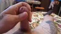 The video starts with a guy, sporting multiple tattoos and an inked torso, walking confidently towards his lover.The passionate duo cant keep their hands off each other, and before long, theyre both naked, their bodies glistening under the warm lights of the room.The guy takes the initiative, running his hands over her smooth skin, teasing and arousing her as he goes.She moans softly, anticipating the pleasures to come.He starts by kneeling in front of her, admiring her womanhood and feeling the power it holds.The sight of her naked body, adorned with intricate tattoos, sends shivers down his spine.With a growing erection in his pants, he cant wait any longer to release the pressure building up inside him.The guy positions himself and begins by tenderly stroking his cock with his hands, feeling every inch of his manhood while focusing on the task at hand.His partner watches intently, her eyes fixated on his movements as she gets ready to receive a handjob like no other.She lays back on the bed, spreading her legs wide and exposing herself to him completely.The guy then takes over, running his hands up and down the length of his engorged cock.He closes his eyes, imagining the feeling of her warm hands wrapped around it as he watches her get ready.Her nipples harden and her breathing grows more rapid, showing her eagerness to satisfy her lovers needs.With a final deep breath, she reaches out and begins to stroke his dick slowly.The guy bites his lip, feeling her touch through the barrier of his clothes as she expertly works on his erection.She continues, gradually increasing her pace, watching his cock glisten with precum and listening for any cues that might hint at what he enjoys most.As her hand slides up and down his shaft, he becomes increasingly aroused.Her other hand explores his body, stroking the tattooed lines that adorn his torso.The combination of sensations is too much to bear, and the guys body tenses as a powerful orgasm overtakes him.His hands grip her wrists, holding her in place as he loses control, spilling his seed all over her waiting hands.Once spent, the guy collapses onto the bed beside her, both of them catching their breath from the passionate encounter theyve just shared.They lie there, entwined and basking in the afterglow, satisfied with the intimacy theyve experienced.The video fades out, leaving behind an image of two lovers, connected by more than just their tattoos and inked bodies.